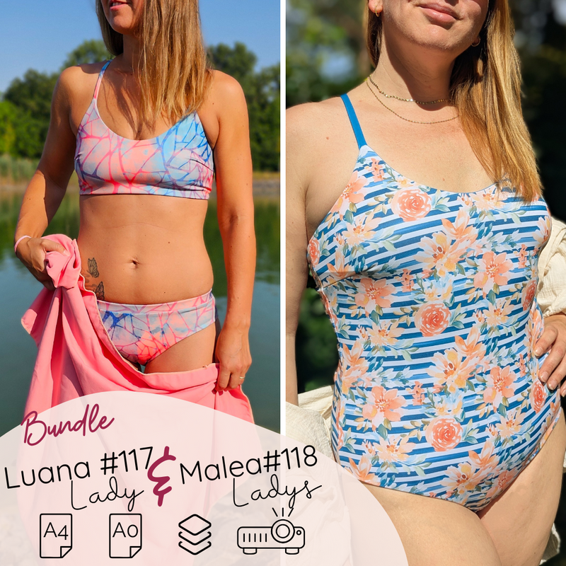 Der Malea Ladys #118 ist ein bezauberndes Schnittmuster für ein Bikini-Tankini-Set mit verschiedenen Varianten in den Größen 32 - 54.
