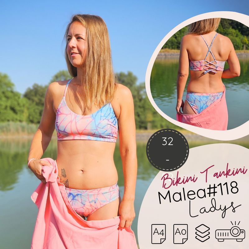 Der Malea Ladys #118 ist ein bezauberndes Schnittmuster für ein Bikini-Tankini-Set mit verschiedenen Varianten in den Größen 32 - 54.